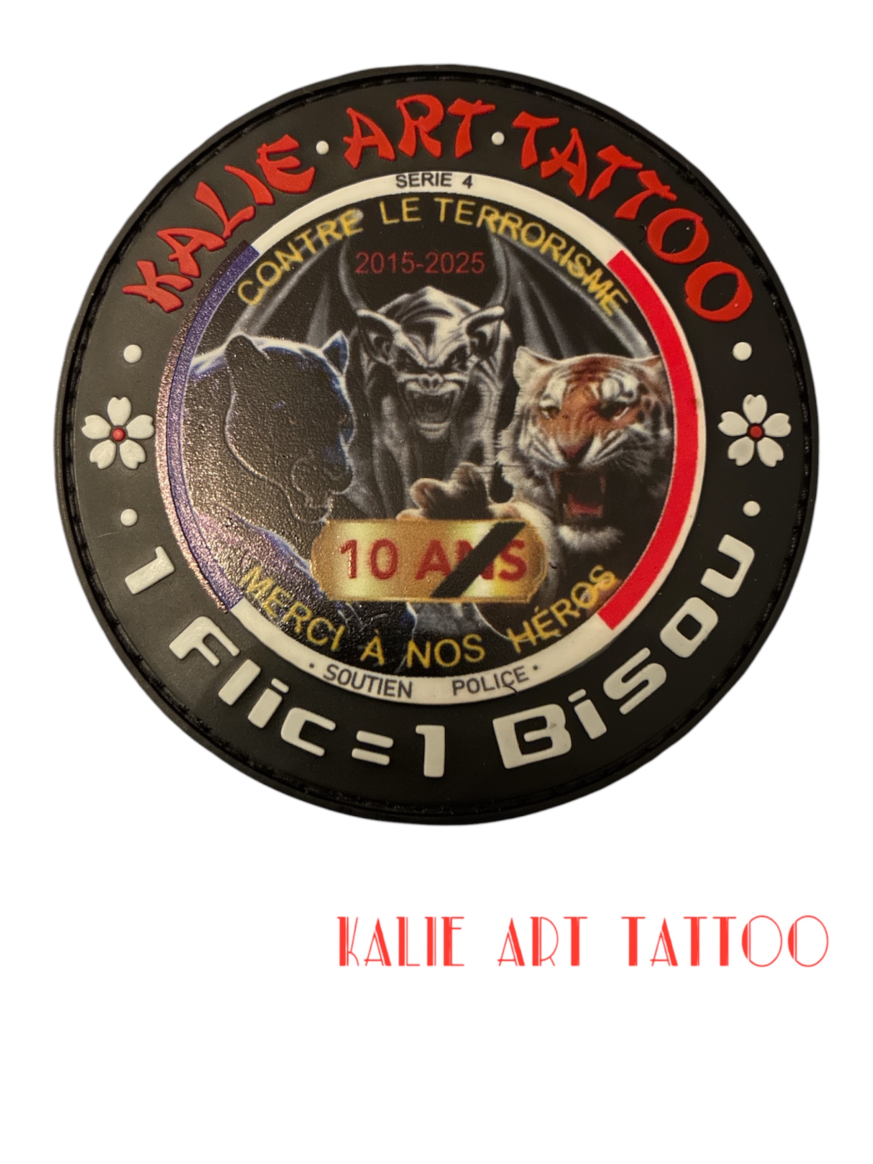 Cet écusson en PVC Série 4 signé Kalie Art Tattoo rend hommage à 10 années de courage et d’engagement face au terrorisme. Son visuel puissant symbolise la reconnaissance et le respect envers celles et ceux qui veillent sur notre sécurité.